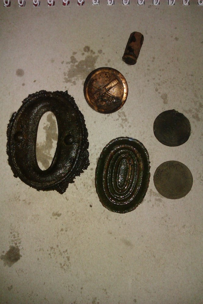 Я сейчас во Львове и выбрался копнуть в окружающих город лесах....Весна полнейшая-снега нет,трава местами зеленая,даже насекомое видел.Находки очень нетипичные для наших мест-польский грош убитый,пуговица какая то,вроде голова снаряда фаустпатрона и всякая хрень....В лесу подумал о том,что скучаю по Харькову,а после того,что случилось в воскресение очень расстроился ...