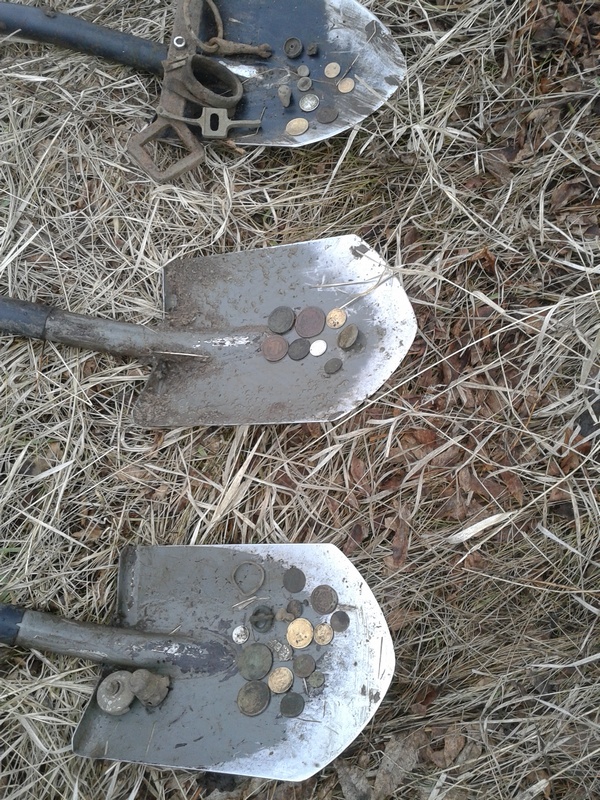 удобно искать монетки и другие мелкие вещи в куче выкопанной лопатой земли и особенно если она вперемешку с листьями или травой. Например у меня вот такой: ( тот что первый)