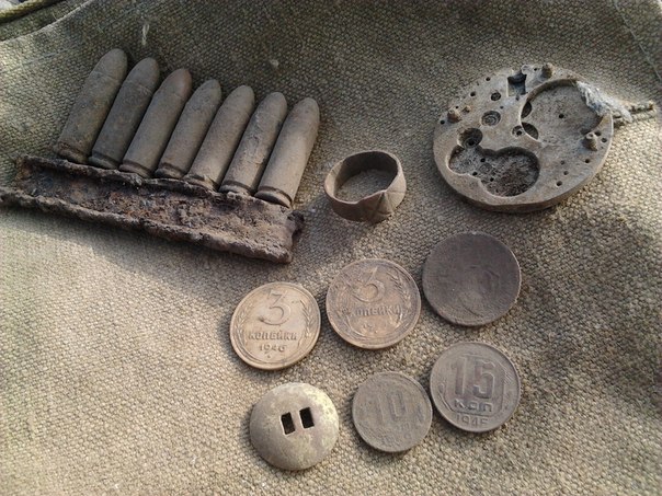 Снова ближайший лесок. Странно... Лесок перекопан-перепахан. А тут вдруг... Всё с участка примерно 50 х 20 метров. В этот раз порадовала 20 мм гильза и зажигалка с покрытием. Ели это окопное творчество, как тогда в тех условиях выполнялось "серебрение"?