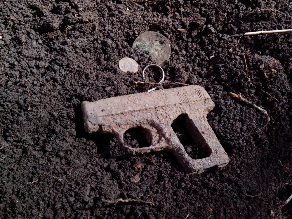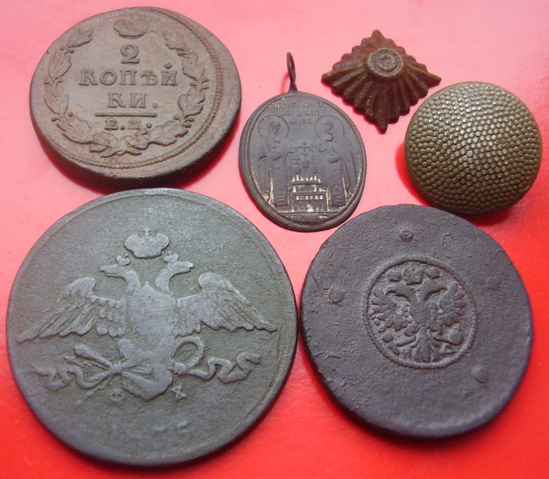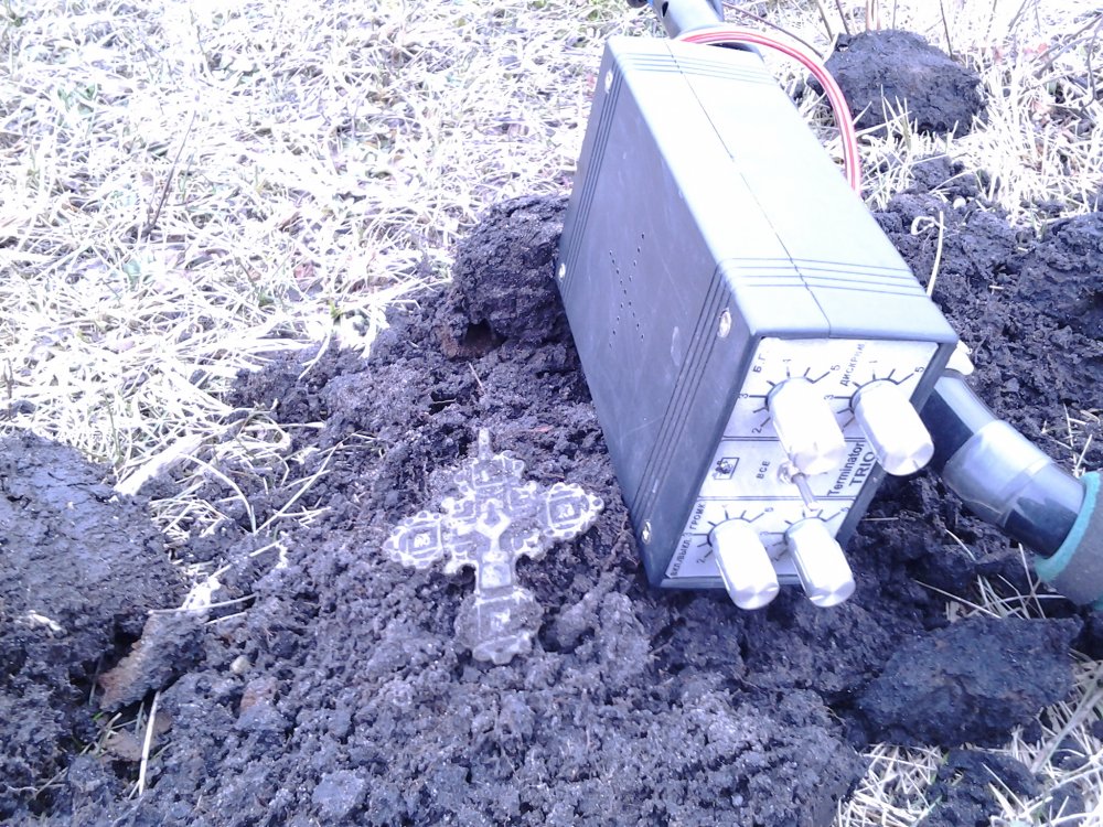 Добрый вечер уважаемые замляки. Уже 4 месяца постоянно слежу за етой веткой . но мой акаунт почемуто завис. Пришлось заново регестрироватся.Я копаю уже гдето года три юзал асю 250, стандарт,корсар см2, теперь терминатор трио. Но такаво еше небыло .был один и тот я перебил . но пришла пятница 13 решил немного покопать перед работой на старом висохшом озере благо ити пешком через мой огород метров 400 рядом . место бито перебито. Третий сигнал и вот он номер 1. Прошол день я успокоился и решил уже после работы покопать часок прихожу на хоженое перехоженое поле распаханая давно деревня уже заросло буряном ходить очень сложно бурян мешает и опять третий цветной сигнал и вот номер 2. Вот такая мистика,или знак?