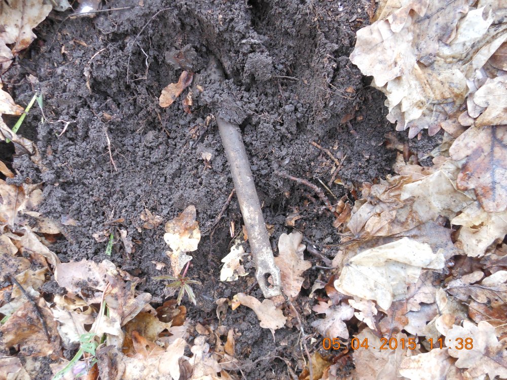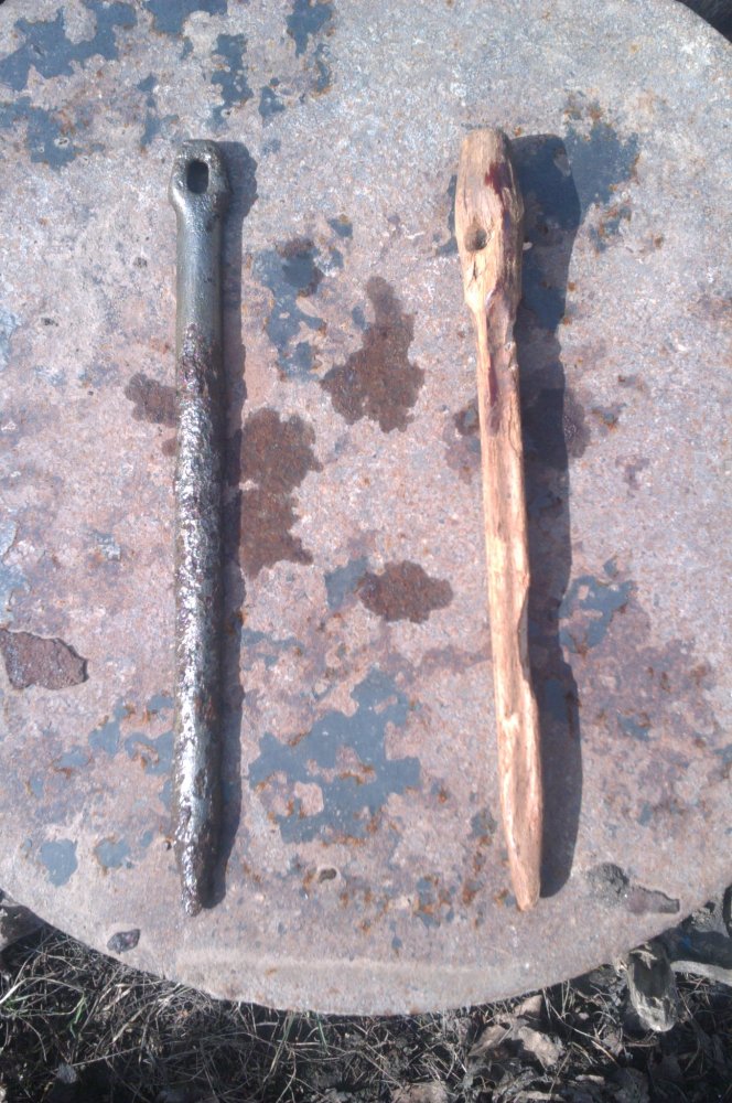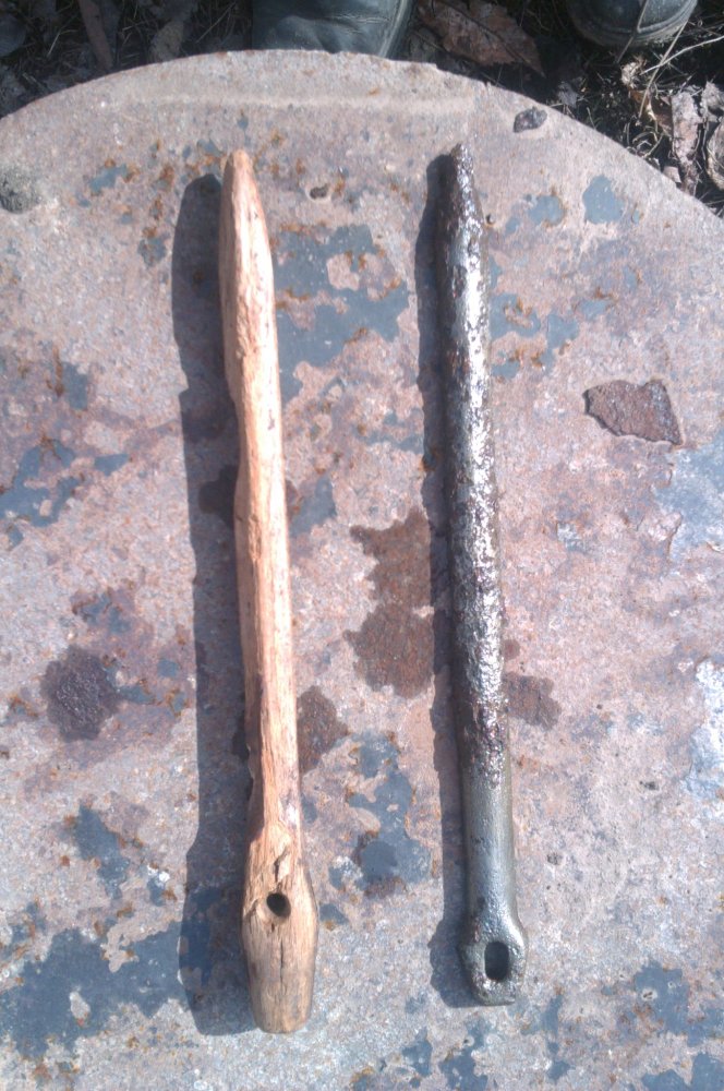 я недавно нашел подобный железный,но это фигня,в той же яме такой же,только деревянный,с остатками лака