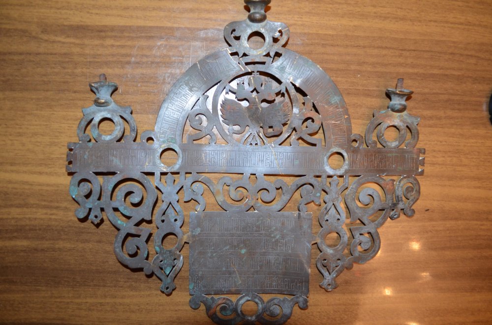В память священной коронации,это по дуге. нованияго сударыни Николая 2,по центру горизонтали. Императрицы Александры Федоровны 1896 года 14 мая,это в нижней рамке может где-то ошибся на древнерусском написано!