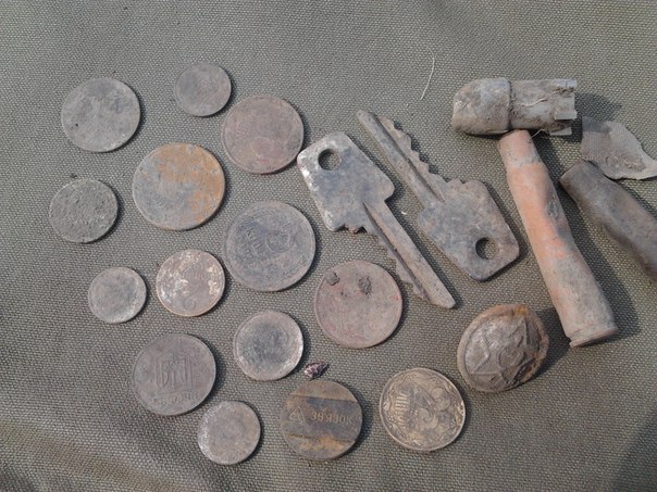 Наша ходячка лежала на глубине около 10 см, советские пятаки - около 30, берег сильно намытый. Прибор Кардинал Профи + ДД 10х12