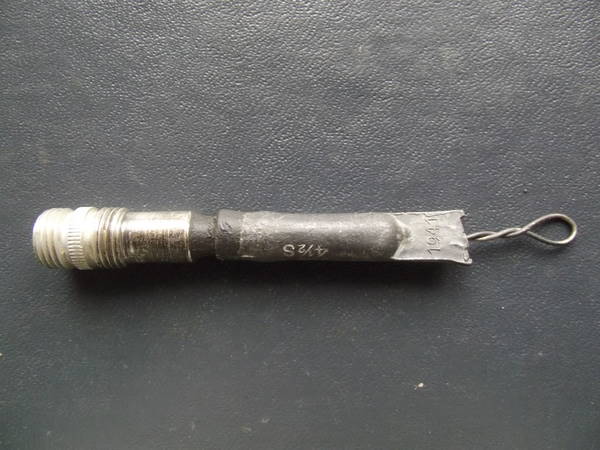пробежался чуток по гансовым позициям,окромя кучи гильзача попалось 50 сантимов французких,непонятная хрень на подобии пуговицы(?) из свинца с керамическим покрытием и мундштук(?) "мундштук" оказался занятным: керамика сверху,внутри похоже что медяха.на боку написано 41 2S ,на сплюснутом конце 41 и atc. гильза для сравнения