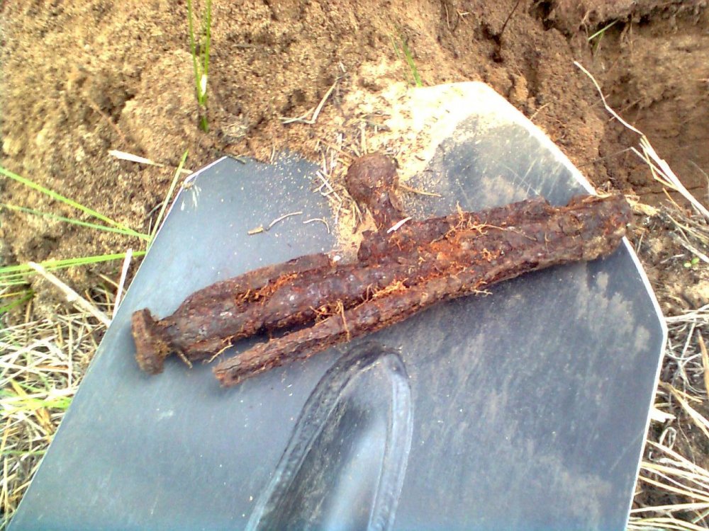Наконец добрался до компа. Позавчера с камрадом Викингом неплохо погуляли по многократно выбитым местам. Именно поэтому надежда на находки не была особенно радужной. Но немногочисленные находки все же порадовали. Полторак Викинга все уже видели, а вот патрон от ПТР он при извлечении из земли он разломал. Недалеко от полторака выскочил католический крестик, хотя понятно, что эпохи абсолютно разные, с надписью Ерусалим с обратной стороны. Кстати крепление у него похоже на то что у взрывака, который на фотке выше. И еще заинтерсовала медная пряжка, от чего она может быть? Найдена на позициях.