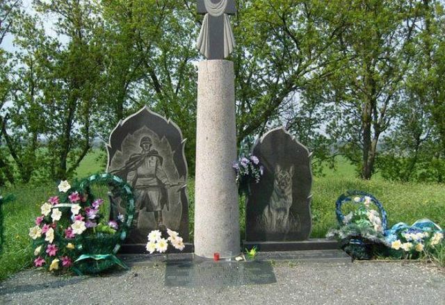 Очень тронула ета история . НА ЧЕРКАЩИНЕ ЕСТЬ УНИКАЛЬНЫЙ ПАМЯТНИК 150 пограничным псам, которые «порвали» полк фашистов в рукопашном бою. Эта единственная за всю историю мировых войн и конфликтов битва людей и собак произошла в самом центре Украины много лет назад, а дело было так… Шел третий месяц войны, точнее, он только начался, когда в конце июля произошли события, впервые изменившие ход Великой Отечественной, или весь ход «Восточной компании», как называли войну в ставке Гитлера. Немногим известно, что по его же приказу, к 3 августа должен был пасть Киев, а на 8-е число на «парад победы» в столицу Украины собирался приехать сам Гитлер, да не один, а с вождем Италии Муссолини и диктатором Словакии Тиссо. В «лоб» взять Киев не удалось, и поступил приказ, обойти его с юга… Так в людской молве появилось страшное слово «Зеленая Брама», местность, не указанная ни на одних картах великих сражений Великой Войны. Этот лесисто-холмистый массив на правобережье реки Синюха, возле сел Подвысокое в Новоархангельском районе Кировоградщины и Легезино Тальновского района Черкащины лишь сегодня известно, как одно из самых трагических событий первых месяцев Великой Отечественной войны. Да и то, благодаря тому, что участником ожесточенных боев в ходе Уманской оборонительной операции был известный поэт-песенник Евгений Аронович Долматовский. С выходом в 1985-м его книги «Зеленая Брама» (полного формата) тайна «Зеленой Брамы» была раскрыта… В этих местах попали в окружение и были практически полностью уничтожены отходящие от западной границы 6-я и 12-я армии Юго-Западного фронта генералов Музыченко и Понеделина. К началу августа они насчитывали 130 тысяч человек, из Брамы к своим вышло 11 тысяч солдат и офицеров, главным образом из тыловых частей. Остальные - либо попали в плен, либо навсегда остались в урочище Зеленая Брама… В отдельном батальоне пограничного отряда охраны тыла Юго-Западного фронта, который был создан на базе Отдельной Коломийской пограничной комендатуры и одноименного пограничного отряда, с тяжелыми боями отступающего от границы, находились служебные собаки. Они вместе с бойцами пограничного отряда стойко переносили все тяготы сурового времени. Командир батальона, он же замначальника штаба Коломийского погранотряда майор Лопатин (по другим данным, сводным отрядом командовал майор Филиппов), несмотря на крайне плохие условия содержания, отсутствие надлежащего корма и на предложения командования отпустить собак, этого не сделал. У села Легедзино батальон, прикрывая отход штабных частей командования Уманской армейской группировки, 30 июля принял свой последний бой… Силы были слишком неравными: против полтысячи пограничников полк фашистов. И в критический момент, когда немцы пошли в очередную атаку, майор Лопатин дал приказ послать в рукопашный бой с фашистами пограничников и служебных собак. Это был последний резерв. Зрелище было страшное: 150 (данные различные - от 115 до 150 пограничных псов, в т.ч. и из Львовской пограншколы служебного собаководства) обученных, полуголодных овчарок, против поливающих их автоматным огнем фашистов. Овчарки впивались фашистам в глотки даже в предсмертных судорогах. Противник, искусанный в прямом смысле и порубанный штыками, отступил, но на подмогу подошли танки. Искусанные немецкие пехотинцы, 