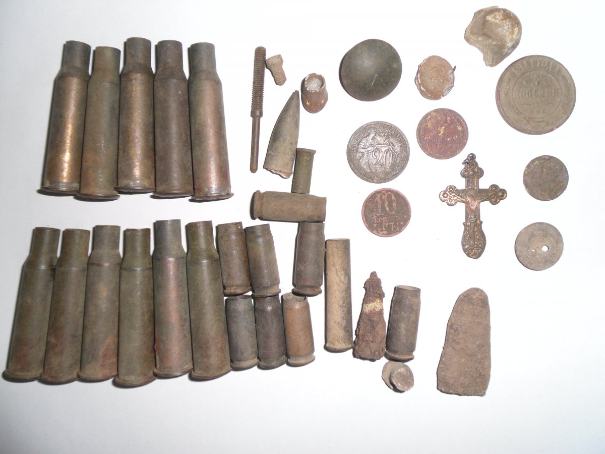 Крайние 2 выхода. Гильзы Мосина 10 штук в одной ямке поднял. Одиннадцатая чуть дальше была. Блеск латуни на некоторых - как только с ящика. Глянул на партию - офигел. 1921 - 26 года.