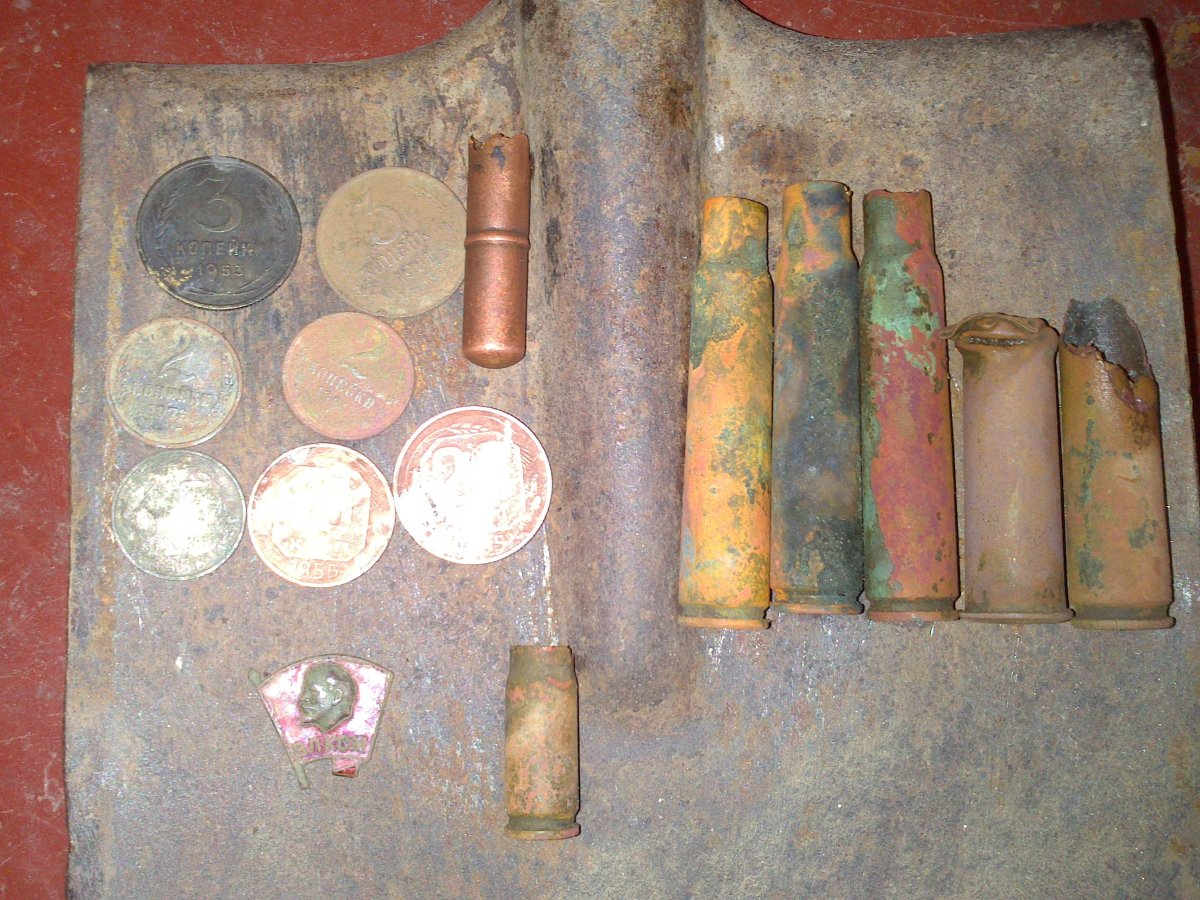 Кто-то копает новодельных Пантикопеев,а я как всегда зарываюсь по пояс в лесные траншеи в поиске железяки побольше Поймал вот сегодня шикарный сигнал,и начал углубляться))На глубине около 60 см,лежит такой девайс.В общем по центру,в форме стакана на неопределенную глубину уходит вниз(минимум 20-30см),от нее исходят 14 трубок,или прутков,в стороны,симметрично.Каждый пруток предполагаю на примере верхнего,минимум по 1 метру... Железяка просто огромная,фото прилагаю,для масштаба положил свою нокию н82.Извините,больше раскопать просто не смог,копал малой саперкой,и так пол часа ковырялся Может у кого есть какие мнения по поводу того,что это,может будет смысл вернуться,и докопать... Ну а так,вот еще результат по верхам,за сегодня.