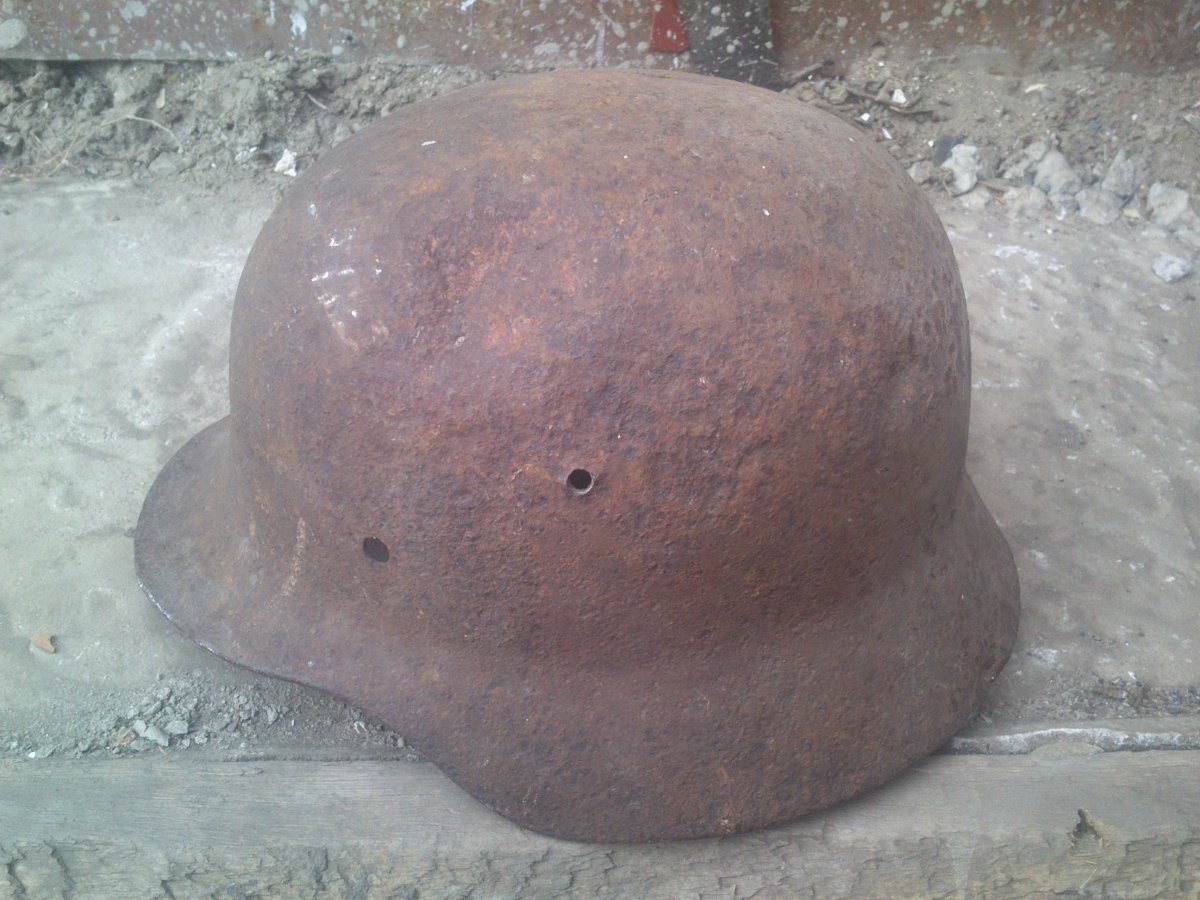 За 10 лет копа, лично, нашёл только троих немцев (по нашим совершенно другие цифры) - поэтому вероятность находки с хозяином минимальна. Гнал его, гада, гнал, чтобы зарубать сапёркой, но утёк - проворный оказался. Видали сохран и хуже, и лучше тоже был - этот нормальный. Жаль, только, состояние предмета - ну ничего, будет для антуража.