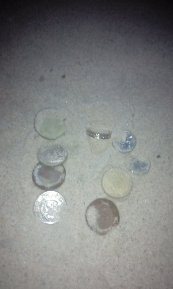 Только что копанули малехо.чуть более 30шекелей и 2 евро одной монетой(она на фото не попала -была у брата в кармане,как и десюнчик шекелей)