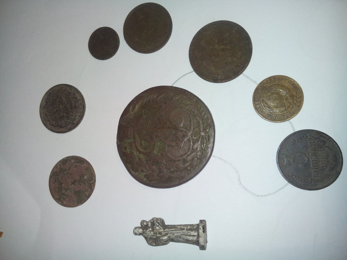 После выходных испорченных дождями , дедушко Хабарий положил под катуху Да и вообще весь день попадалась бижутерия и гильзач,монет было 2 до и после рефрмы, их не фотал.