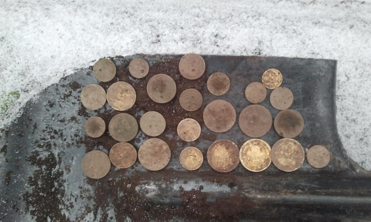 первый выход в снег, его выпало дохрена конечно и лесопад конкретный,но с хорошим аппаратом монеты будут всегда,тяжело физически только,на три часа меня больше не хватило,скромный результат