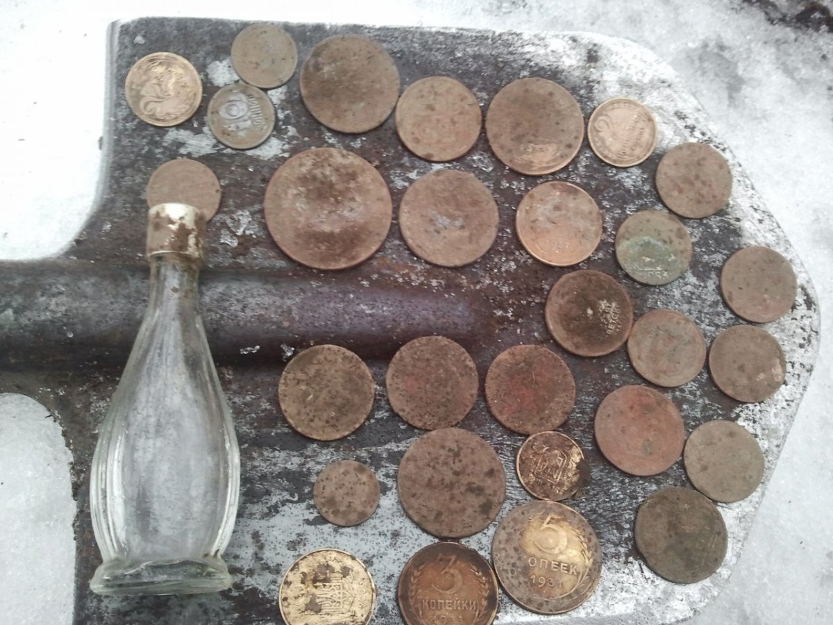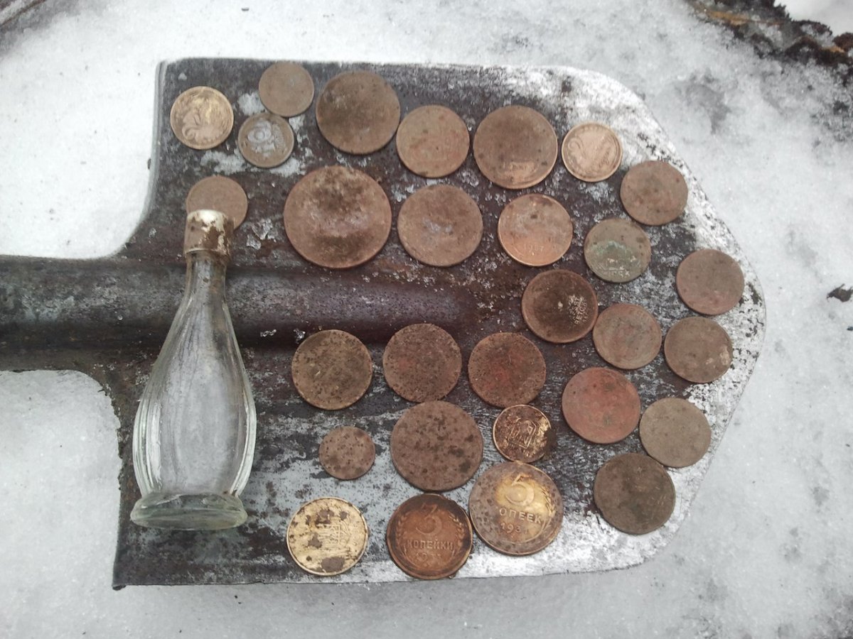 Снега многовато - местами до 20 см . При этом верхний слой как пух, а нижний - каша с водой... Грунт как раз влажный на достаточную глубину. А монетос - послереформа: пара пятаков да пара трёшек... Но сам процееесс... )))