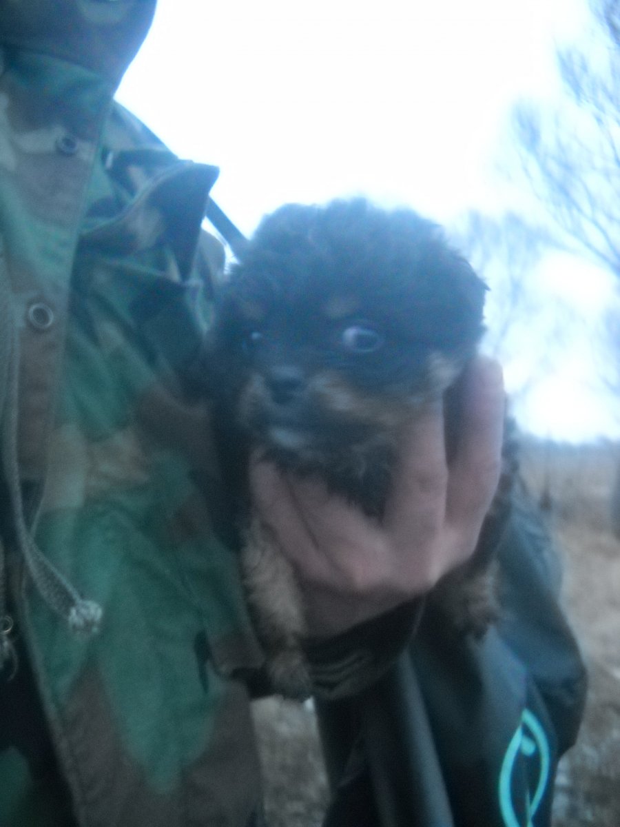 Грунт везде копается хорошо,промёрзлого монолита нет. Щенка нашёл на обочине грунтовки в метрах 200 от деревни.Позвонил супруге на предмет приютить - узнал где , я с ним жить буду.Поэтому донёс до первой хатки где лаяла собака,присмотрелся а там щенков штук пять,и оставил.