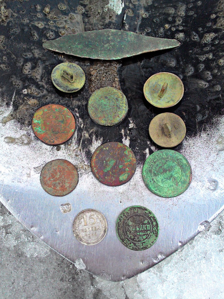 Белая сейчас не клюёт: знакомый был сегодня на своих огородах - общий итог 3 кг. - очень грустно, по сравнению с окунем, особенно копчёным! Если копать, грунт отличный - особенно в том районе: сосна и песок! Ну а так, из находок, монетки и война: особых боевых действий там не было, а вот склады РККАшные были, которые немцы накрыли - чермета раньше хватало, сейчас похуже.