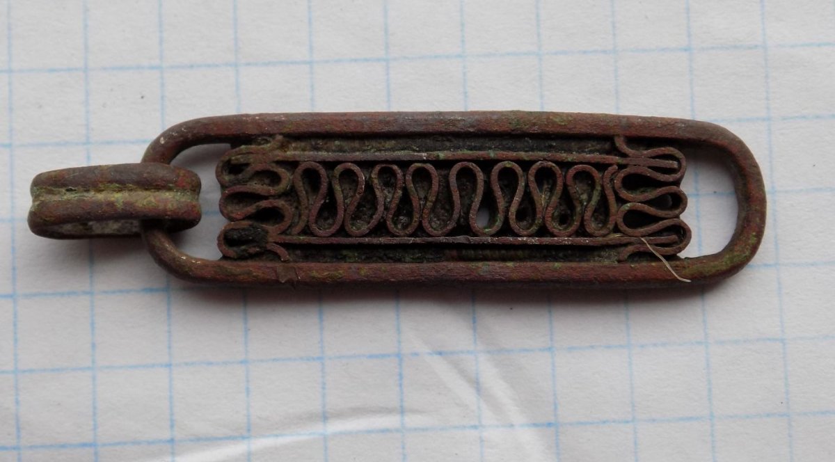 Не нужно спешить выкидать шмурдяк, вот с последней поездки привез - думал большой язычек от "молнии"... Удивил размер и вес - помыл слегка и взору открылся артефакт может даже пару тысячилетней давности - колечки такого типа попадались на фибулах и видел на фото ауресы с такого типа припаяными петельками. Орнамент когда долго всматриваешься то аж завораживает, мне видятся даже скандинавские мотивы... Хотя это может игра больного воображения из-за алкогольной интоксикации - Купала все же сегодня!