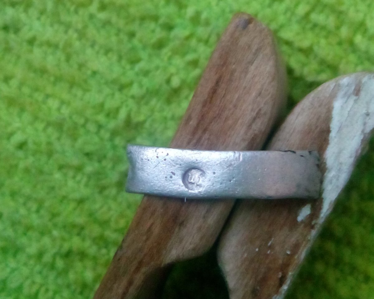 Всем добрый вечер.Вчерашний выход по Челбурде.Подскажите по колечку,что за проба такая.Отломанный кусочек бросал в нашатырь,он почистился,но нашатырь не посинел,а чуть желтоват стал. И подскажите,что за касок сосуда с стрелой.