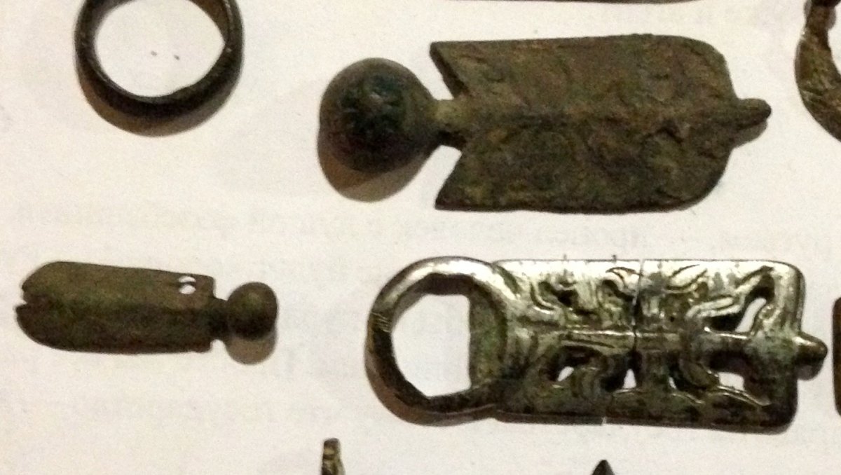 Средневековые застежки-крючки: (а) — крючок на поясе оголовья, мог. салтово-маяцкой культуры близ д. Подгоровка (Белгородская обл.) (VIII-IXв.) [30]; (б) — могильник близ г. Стерлитамака (Республика Башкортостан) (VIII-IX в.) [31]; (в, г) — Новолинский мог. (Пермская обл.) (VII-IX в.) [32]; (д) — погребение в окрестностях Кисловодска (Ставропольский край) (VIII в.) [33]; (е) — серебряный крючок из погребения салтово-маяцкой культуры (Муравьевский клад) (с. Столбище Белгородской обл.) (вторая половина VIII в.) [34]; (ж) — колчанный крючок салтово-маяцкой культуры, Кировский V мог., к.3 (Ростовская обл.) (VIII-IX в.) [35]; (з) — Бродовский мог. (Пермская обл.) (VIII-IX в.) [36]; (и) — мог. Хусаиново (Республика Башкортостан) (VIII-IX в.) [37]; (к) — ранние болгары, Больше-Тарханский мог (Средняя Волга) (VIII-IX в.) [38]; (л) — к. 31, лагеревских курганов (Южный Урал) (IX-X в.) [39, 72]; (м) — к. 7, лагеревских курганов (Южный Урал) (IX-X в.) [39, 72]; (н) — мог. Красная горка салтововской культуры (пог. № 264/к-24) (Харьковская обл.) (VIII- IX в.) [41]; (о) — мог. Нетайловский салтововской культуры (пог. № 23/371) (Харьковская обл.) (VIII- IX в.) [42]; (п) — п. 66 мог. Борисово (Геленджик) (VII-VIII в.) [55]; (р, с) — мог. Дюрсо (Новорросийск) (IX) [55]; (т) — Стерлитамакский мог. (Республика Башкортостан) (IX-X в.) [46, 72]; (у) — Восточная Европа [46], (ф) — мог. лангобардов в северной Италии (VII в.) [70]; (х) — п. 117 мог. Борисово (Геленджик) (VIII-IX в.) [55]; (ц) — пог. 2 Ямаши-Тауского к. (Республика Башкортостан) (IX-X в.) [72]; (ч) — городище близ с. Рухотин (Черновецькая обл.) (VIII-X в.) [82]; (ш) — крючки из северо-восточной Болгарии [82].