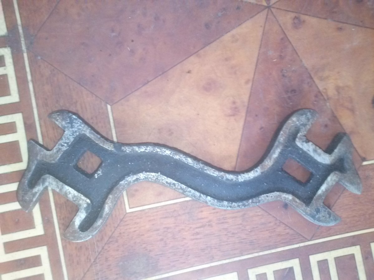 Приветствую! Попался такой спецключ довольно большого размера. Кто знает от чего, не по войне ли? Позже почищу, может клейма есть. Еще на блошинке попался старый от сельхозтехники. Абсолютно неюзаный!