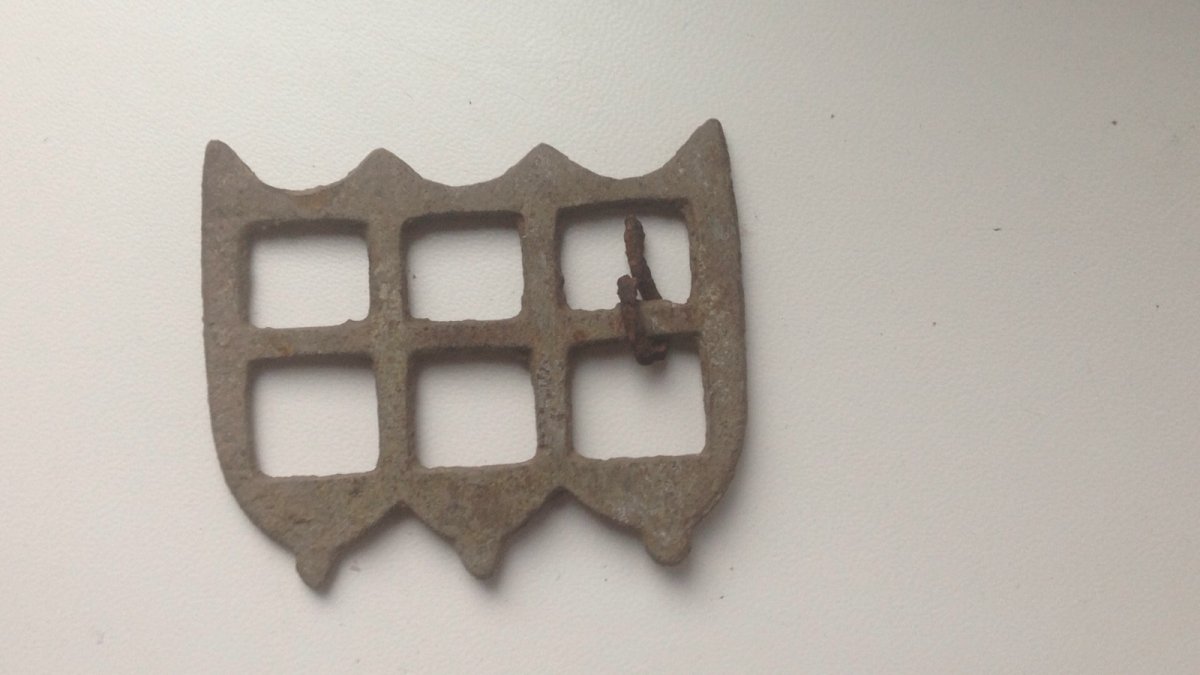 Наконец-то поехал я в свое родное село к куму - на его поле был хуторок из хатки одной или двух, где жил мужик какой-то. Копать там никто не копал однозначно ибо как на картах нету хуторка. Ну я в надежде что накопаю тридцать вагонов монет (надежда умирает последней, как гаварицца) осмелился посягнуть. и результат эвона какой. Из всей груды мтеаллолома, обломок интересный от маленького казана что-ли с каким то орнаментом и вот такая приблуда - непонятная. може кто скажет шо воно за такэ?