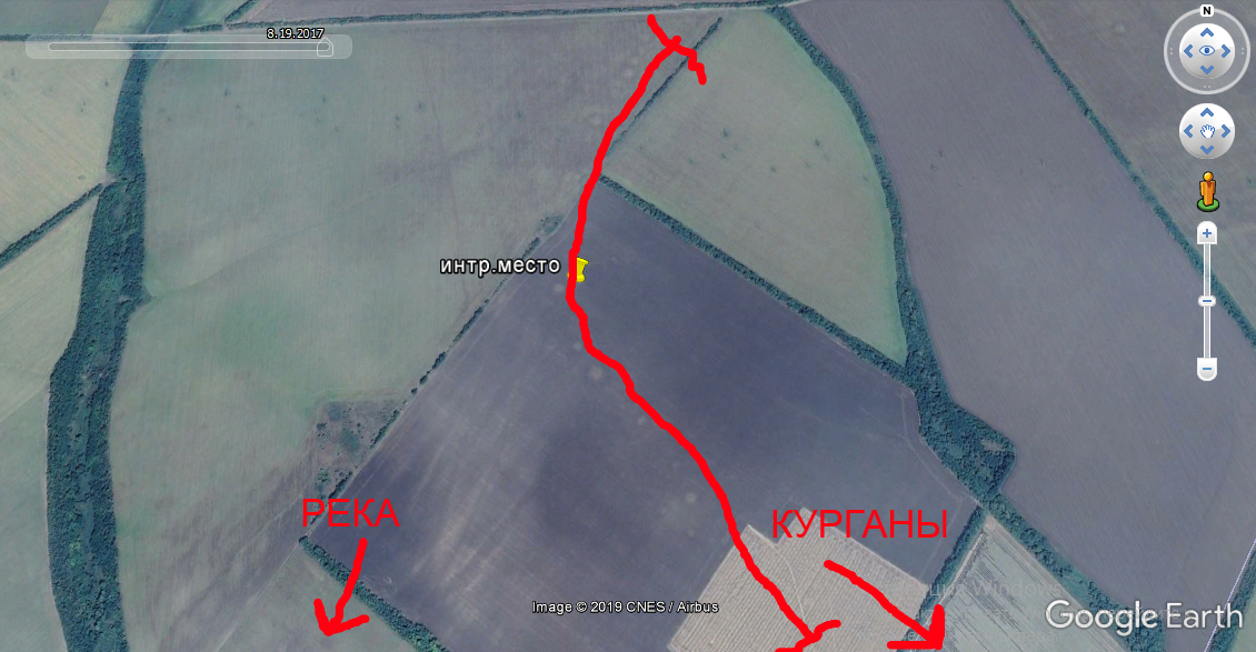Всім привіт! Потрібна допомога від досвідчених камрадів. Знайшов цікаве місто, але до нього їхати далеко. Підскажіть що могло бути на цьому місці? По контуру красної лінії чітко видно, чіткі круги і вони стоять в певному порядку (відзначив великою красною дугою), недалеко знаходяться кургани (відзначив стрілкою, вони знаходяться на іншому полі аж чотири штуки великі і поруч стоять), поряд є ріка, яка ще існує. Найближчий населений пункт (село) в 5 км. Дивився по програмі Google maps, вмикав різні роки знімків і ці кругляхи є на всіх зйомках, всіх років. Невже це старі поселення? Чи кургани розпахані (але така велика кількість)?