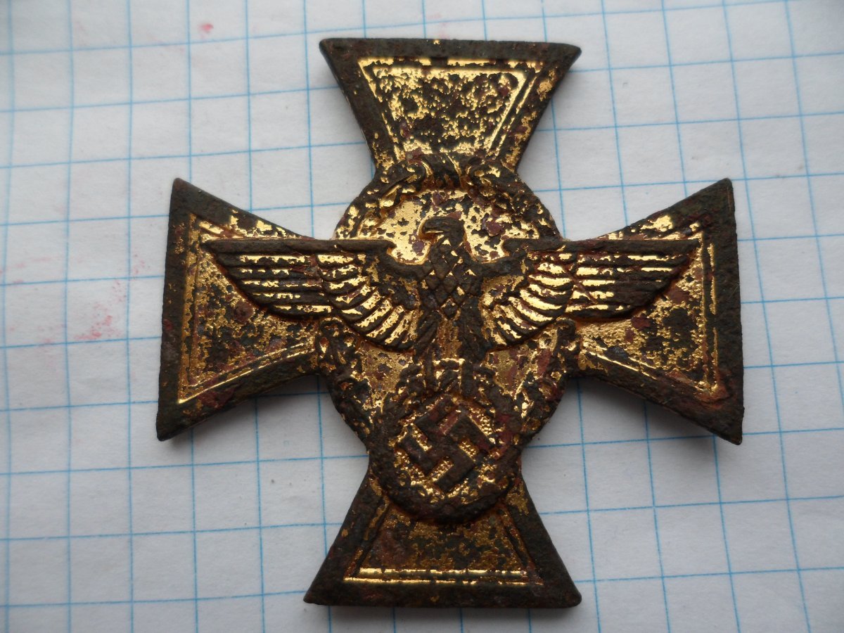 добрый вечер,вот такой крест находил, давно правда,но свежо воспоминание найден у нас в соседнем районе место ,предположительно штаб немецкой армии просто интересно что человек который носил этот крест работал в полиции еще до прихода к власти гитлера знатный наверное полицай рядом была еще медаль в память 1 октября 1938 г медали уже нет
