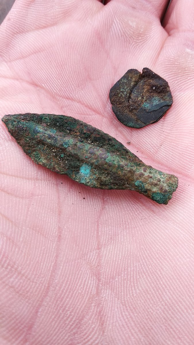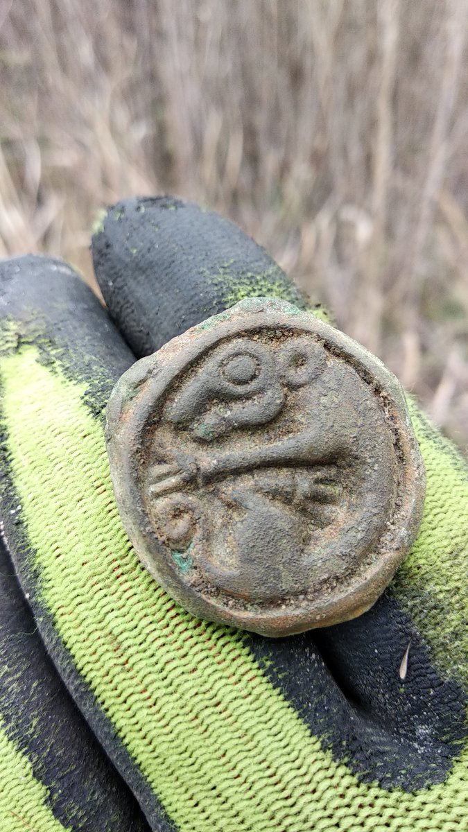 И подскажите ещё пожалуйста по монетке оттуда. Мне видится какой-то мини асс. С одной стороны просматривается нос , с другой между спицами колеса только две буквы Х и А от монограммы APIX, вес 6,28г маловато для асса IMG_20191117_212950.jpg IMG_20191117_213050.jpg
