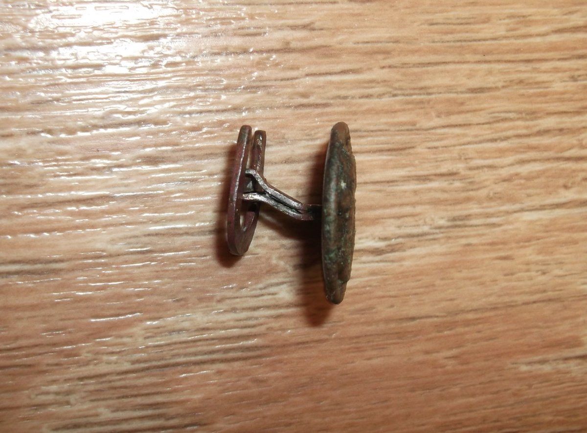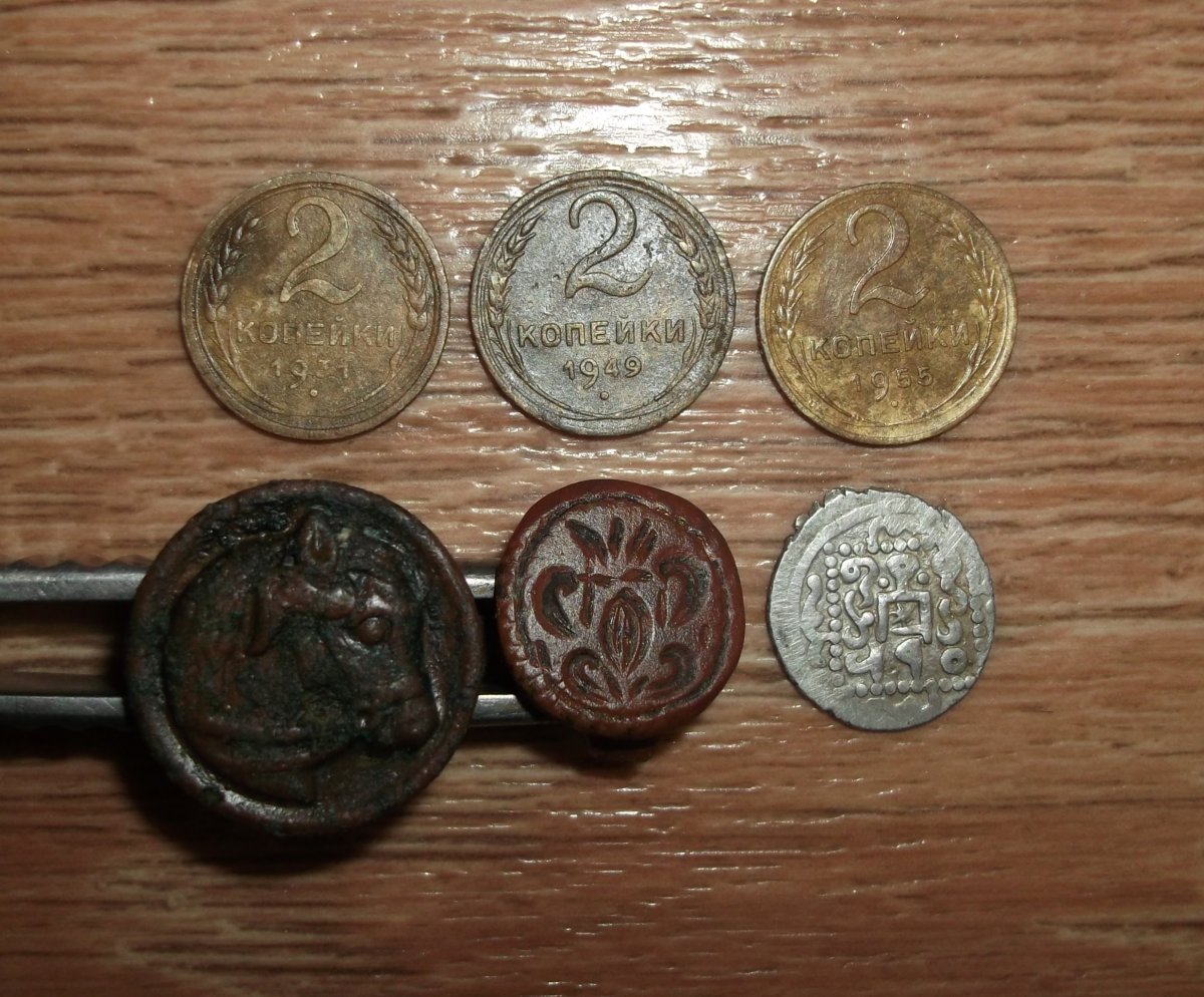 Поискал часиков 8 недалеко за городом , поехать дальше возможности нет . Пару находок всё же попалось нормальных . Запонка с лошадкой с обратки . Сопутка .