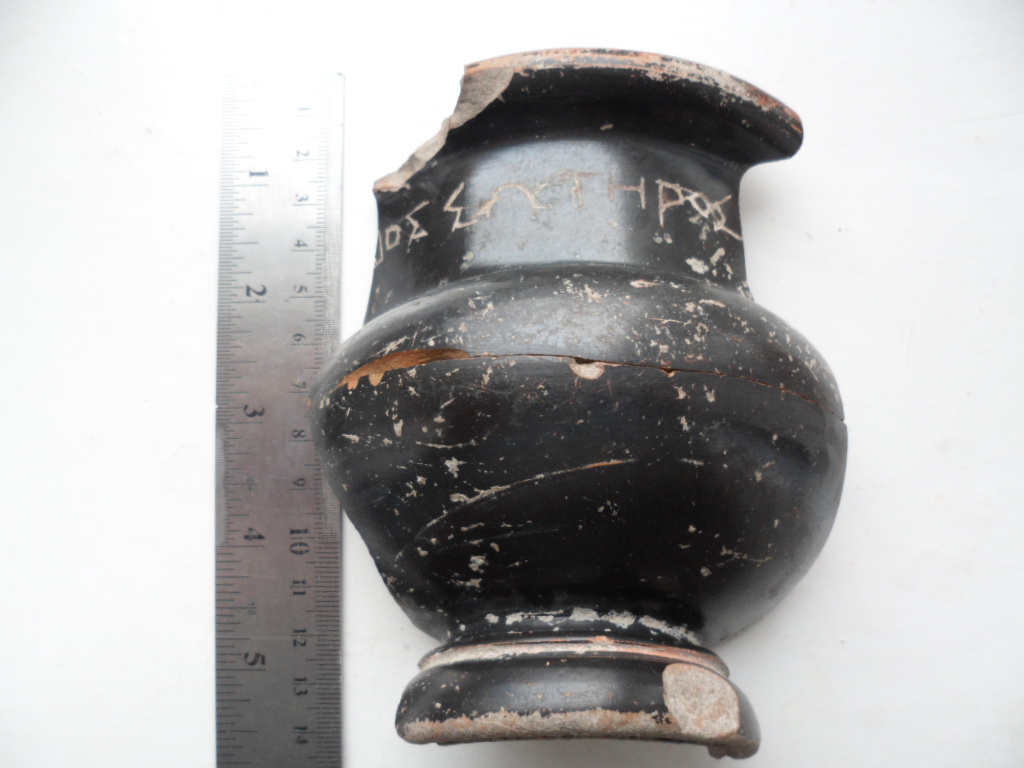 граффити на посудене богу Спасителю-Διος Σωτηρος Аттика 5 в.до.н.э.,последняя четверть. Посвящение Зевсу Сотеру....Спасителю.