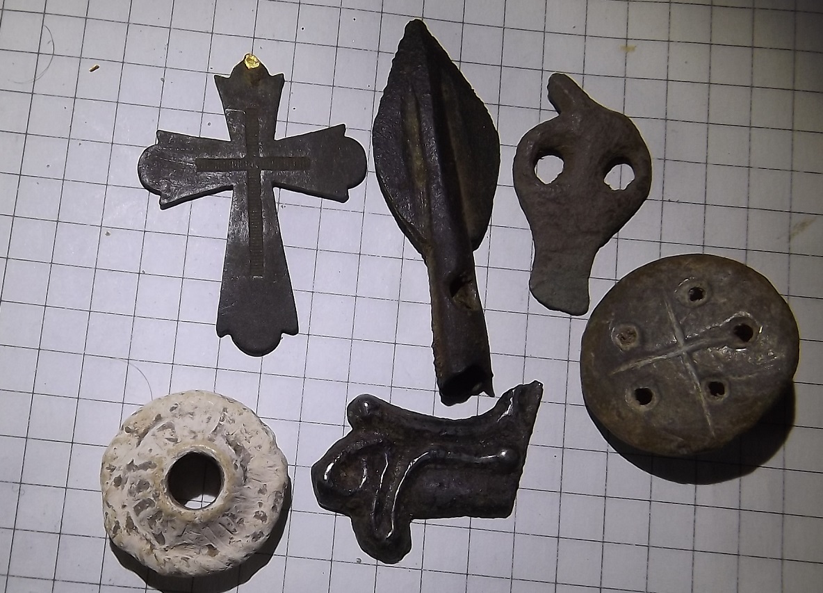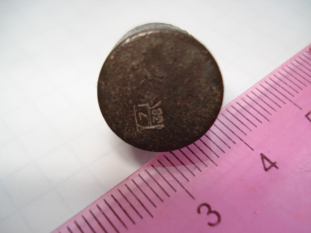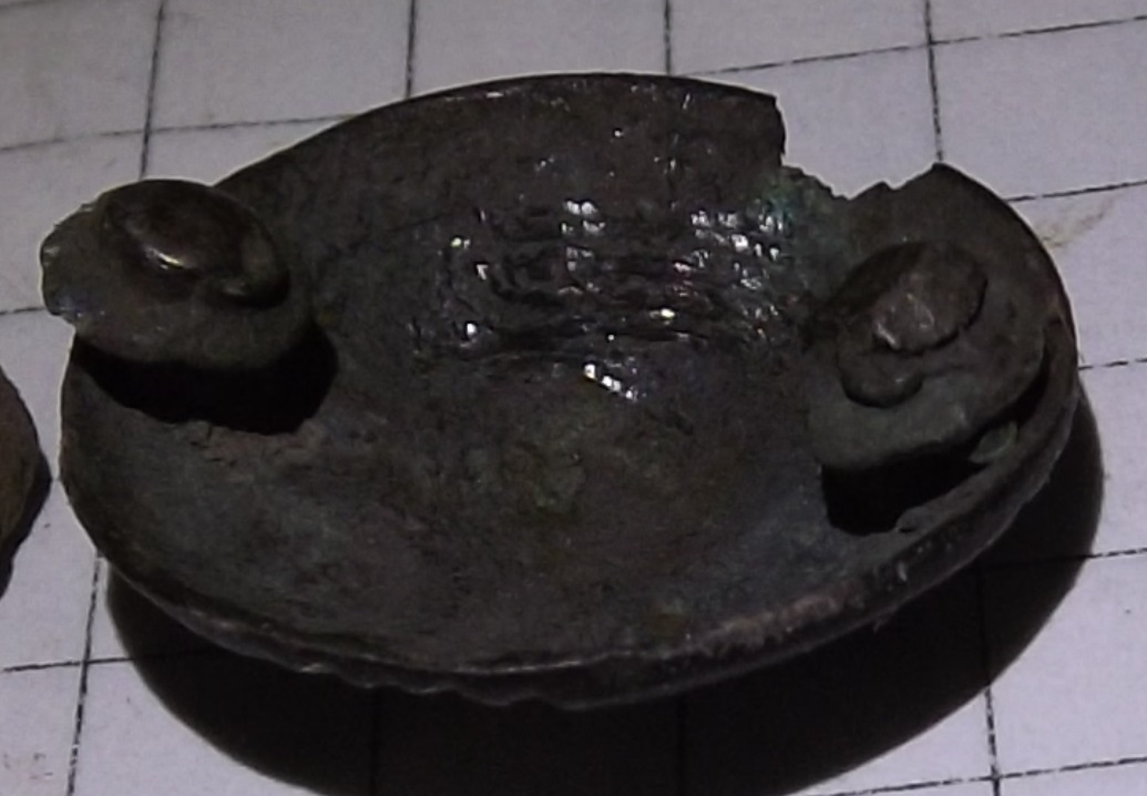 Схожий на жетон ну чому такий мізерний? В мене з десяток жетонів але розміри набагато більші , тому і сумнів. Накладка була якби в позолоті , а може в фарбі жовтій , сумнів у мене чи сучасне чи в роках . Заклепане з шайбами , чи робили в старі часи так ? Фібулу римську в тих місцях знаходив , може Рим ? Старі культури що жили в наших краях не були такі продвинуті на такі вироби і символи не штамповка, лите , бронза , кришиться.