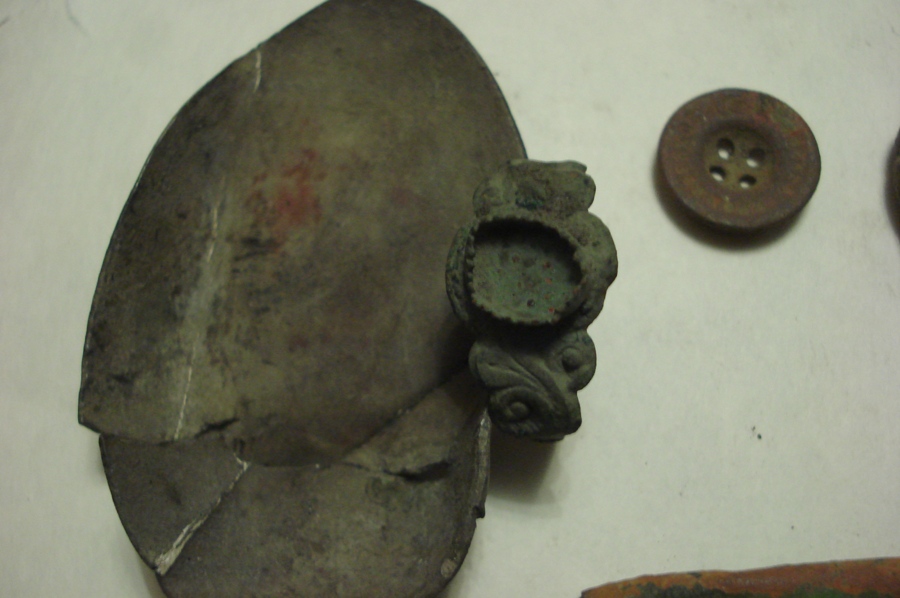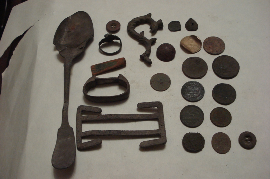В баночке какое то донесение или справка была но увы оно стлело, колотушка попала и всякое разное. А да от гаубиц порох там разный и гильз не мерено разного калибра. Но хит раскопок это было заземление от радиостанции на глубине около 3-х метров
