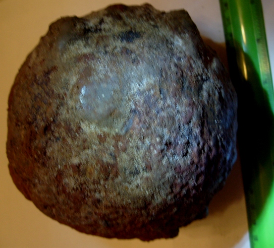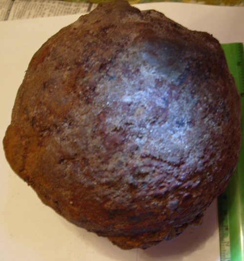 я в детстве нашел на черноморской в траншее ядро. только поменьше раза в 2-2,5. оно лежало лежало пока его не выкинули