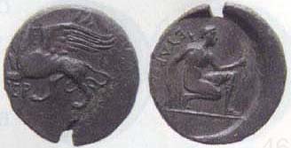 Туман,по меряй диаметр монеты и как бы вот Таврида, Херсонес, IV-III век до Р.Х., АЕ21. АЕ, вес 6,18 гр., диаметр 21 мм. Время чеканки: IV-III век до Р.Х. Место чеканки: Херсонес. Аверс: Артемида Парфенос, сидящая на корточках на земле, в левой вытянутой руке держит лук, в опущенной вниз правой руке стрелу. Реверс: ХЕР, грифон, прыгающий влево.
