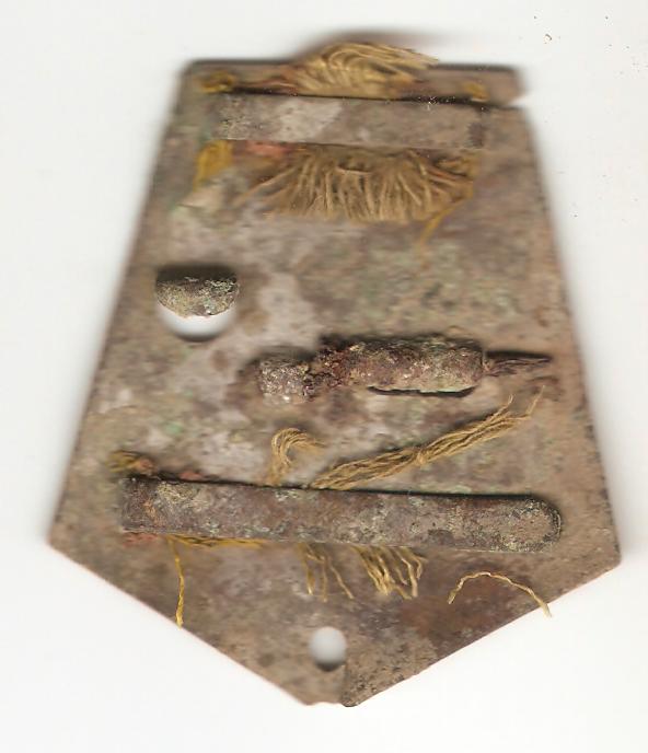 Вот, колодка латунь, остатки ленты (желтые нитки). Мож кто знает какая медаль цеплялась? Маслята утоплены в плавнях.