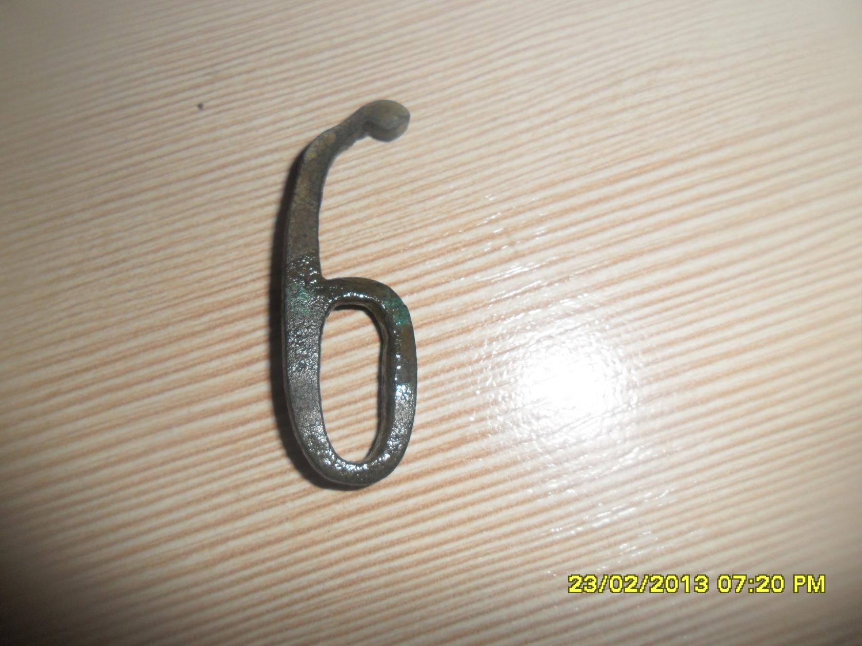 с праздником вас комрады! сегодня тоже решил покопать. недолго мой коп длился, за пару часов замёрз как собака!!! но хоть не зря помёрз, што за шестёрочка такая попалась?