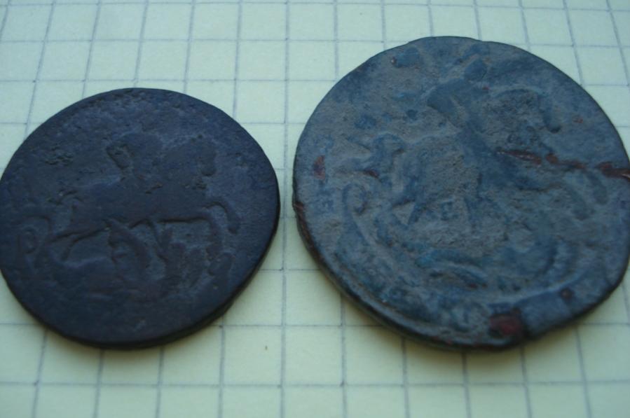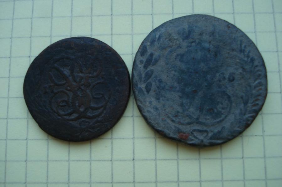 Нашел в этом году вот такие две . Копейка Елизаветы и двушка Екатерины . Посколь сам почистить не могу будуть в хранилище .