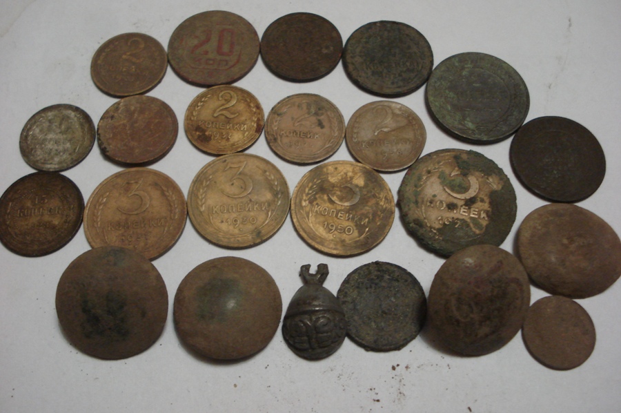 Да просто время сейчас в обрез, фермер однако. Я не отмазываюсь просто так есть, весна на дворе. Вырываюсь на коп на пару часов буквально , вчера поехал уж после трёх , копнул 20 коп советов 29 год , трёху как всегда 30-й , копейку царицу , 1 копейку советы 33 год , кольцо обручалку медное , три круглых пули казаков, ну и нашел воронку поросшую камышом ,но правда редким, провёл МД а она всплошную гатит цветниной 2х2м. ! Копать тяжело, корни, я так слегонца прокопал сантим. 50 в воде выхватил ядро, отнють не цветное ,но ядро !А может там глубже пушка от казаков ????? Темнело не докопал, да и вода в воронке. Вот и мучаюсь теперь, как вырваться туда в рыбацких сапогах и с ведром , работа не пускает ............