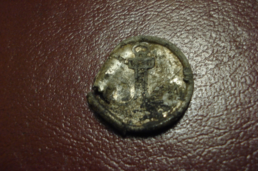 Сегодняшний выезд по делам и без прибора за 120 кил. принес свои плоды . Дома там старые , на одном из них лейба 1884 г. и на глаза бросившаяся пуга , тоесть часть ее . Медные с таким рисунком попадались , а эта ? хз .