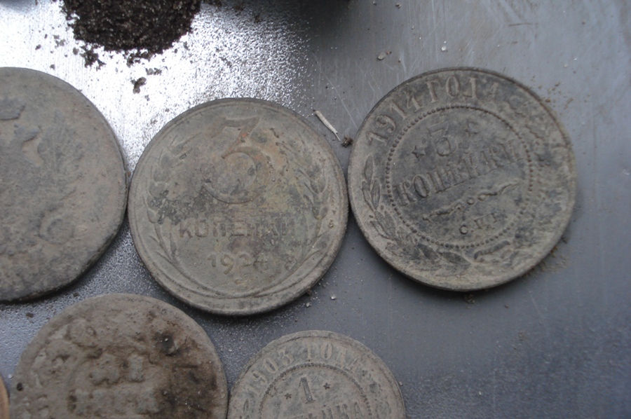 Сегодня 6 (шесть ) монЭтт. Но стыдно даже фоткать. Очень поздние "Советы" и современная ходячка.А так мечтаю поднять 5 коп 1924гг. 1,2, 10 коп - уже поднял. Трюндель подарили. Очередь за пятерочкой!!!!!