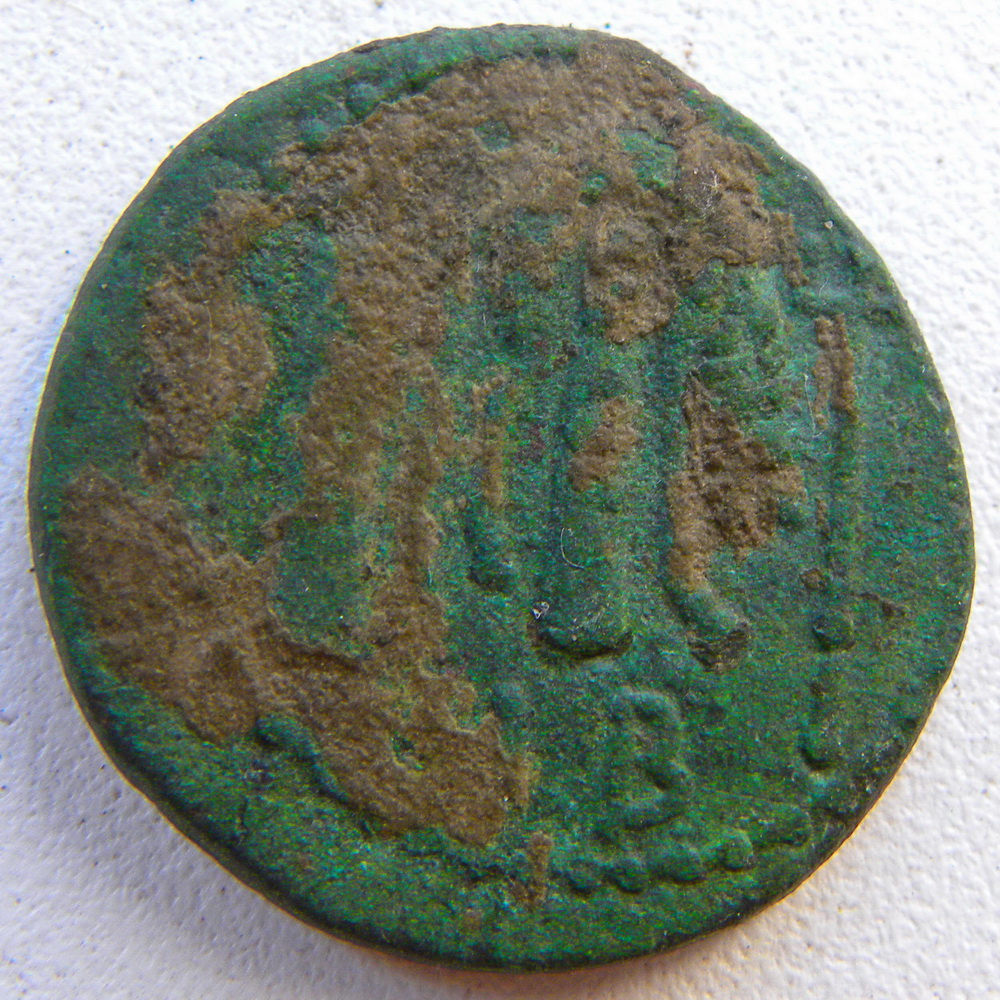 Пантикапейский ассарий , царь Митридат VIII. 39-42 год н.э. Чувак воевал с Римом, за что и сгинул. Если кому интересно, но букаф многа : http://centant.spbu.ru/centrum/publik/kafsbor/20021/gor.htm