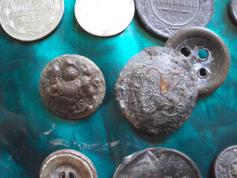 Я б тоже не тащил домой...Наелись маслины , консервов...вот и ленивые стали.....Вот за сегодня немного....На пугвице ,написано : "Таврической". Там еще зажигалка и пятак ,убитый...