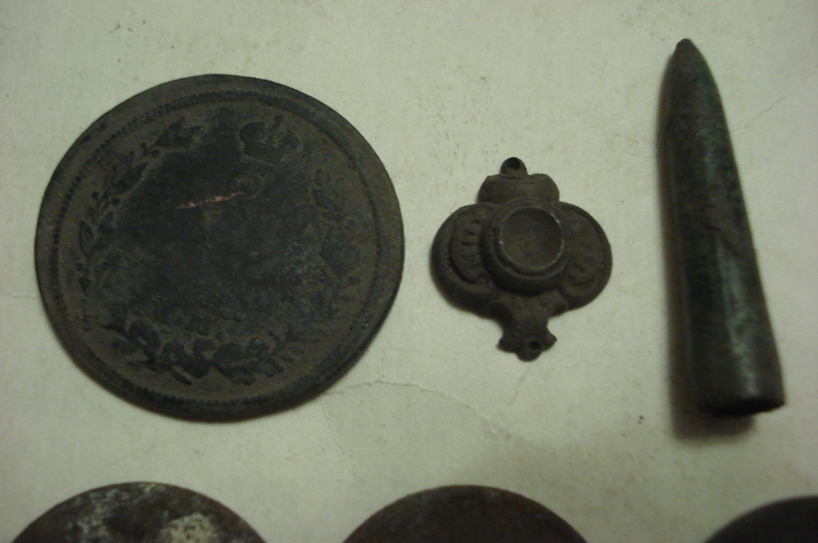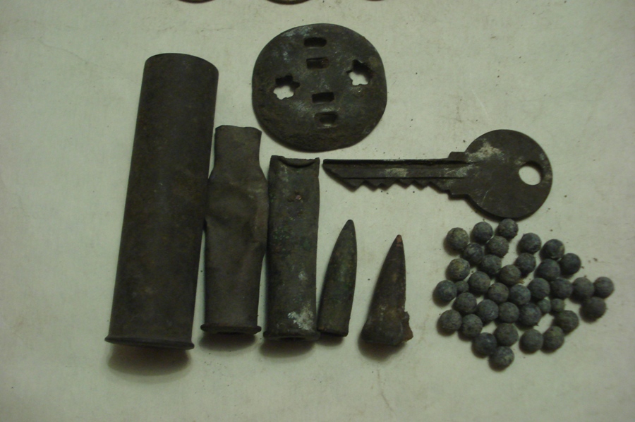 Сегодня с батей , после работы , заехали на разведку ) на одну полянку . На первом фото то что я нашел за час , остальное все нашел папик . За не имением второй клюшки , мне досталась лопата . Найдя пулевидный нак , променял прибор на лопату ).