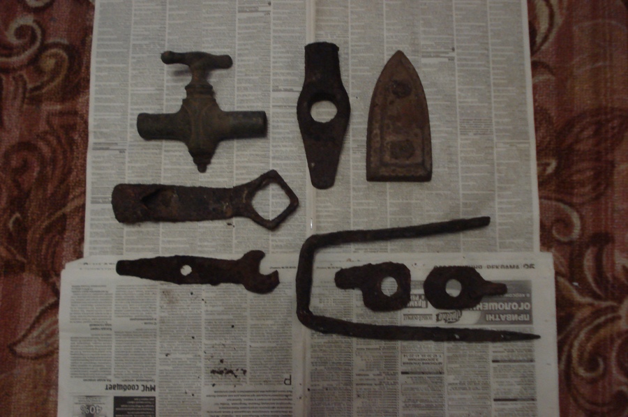 Всем привет . Первый раз я рад чермету ) , копнул кил. 20 . Понятно что ерунда , но под ним местами прятались находки . Одна из них на последних фото . Печально , что какой то упырь ее запорол . Вообщем , считаю день удался . Повстречал копарей ( не знаю что нашли ) , пообщался с одним и дабы не мешать ушел восвояси ) . Подскажите что за молоток такой интересный ? Утюг , чьих времен будет ? Кран (латунь или бронза , современщина ?) , ну а последнее самое интересное и изувеченное , ЧТО ? Медаль ?
