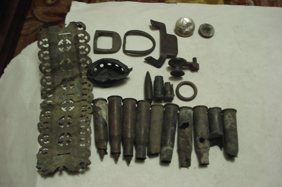 На втором фото: кроме щеколды,вижу тыльник от ножа (бытовуха),пятак "массон" (убитенький)...Остальное ,по таким фото-трудноопределяемо.... Зы. Если не затруднит,отложите для меня,самоварный паровичек (на первом фото,в центре справа). Спасибо. Удачи.