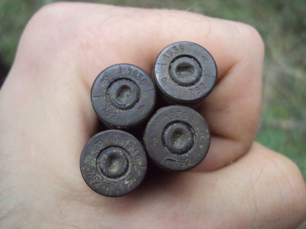 А у нас сегодня вот такой улов, фотоаппарат каналья ( или я ) разрядился,.. были еще бутылки, еще одна фляга, два противогаза гансовских, два магазина ZB... и всякой мелочи куча, в том числе с пол ведра латунных гильз 7.92 добавлю еще - на втором снимке коробочка зубного порошка или пасты диаметром около 5 см.