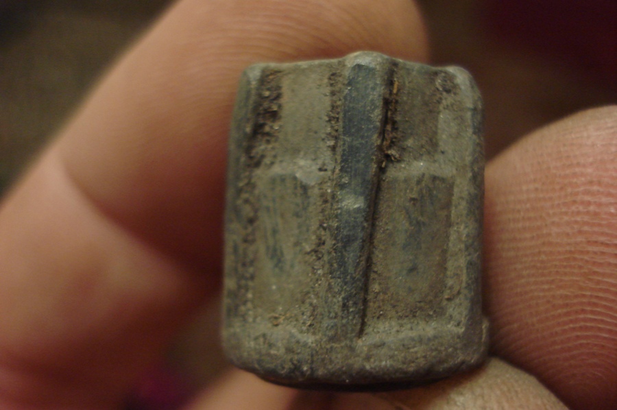 Всем привет . Виктор слева сверху и снизу есть у мну такие девайсы . Значек показывал здесь , Redmask о нем отписывался и просил показать почищенным , а он как был так и остался ( , хоть бы хны , думаю с одного места подняты . А слева (низ) какая то татарская накладка (имхо). Тоже сегодня заехал туды , где Петровскую полушку поднял , первой попалась царева двушка , а потом советы и прочее . Ложка целая первый раз попалась и мега блесна обломаная ( . Подскажите пожалуйста по клейму на гильзе . Что за фигулька на последнем фото , современная похоже .