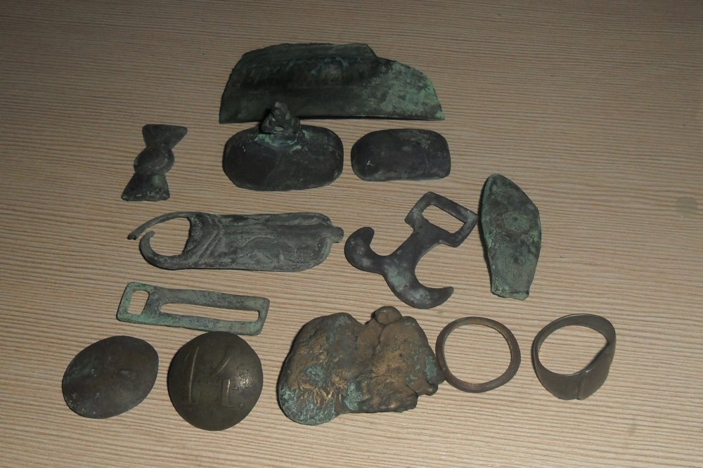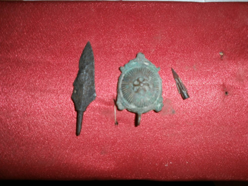 Доброго времени суток ... показал мне один камрад 3 находки с одного мне знакомого места и мне тут же захотелось туда....Металлические наки поднимал в первые..Металлическую фибулу видел в первые и поднимал соответственно на чешуйках изображен чайник и не по нашему написано ..это мы копали старину потом попали на войну но фото позже.. су ув.