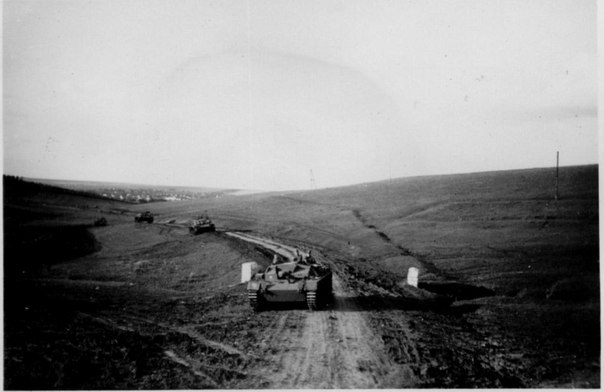 "75мм. Короткоствольные, самоходные орудия StuG-III Ausf D. 190 дивизиона штурмовых орудий. Восточней Любимовки. Любимовка на заднем плане" Я вот что-то не припомню в районе Любимовки таких холмов...