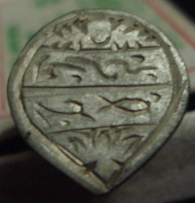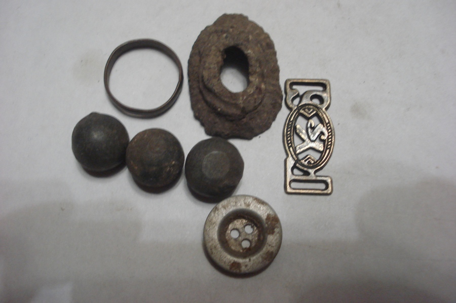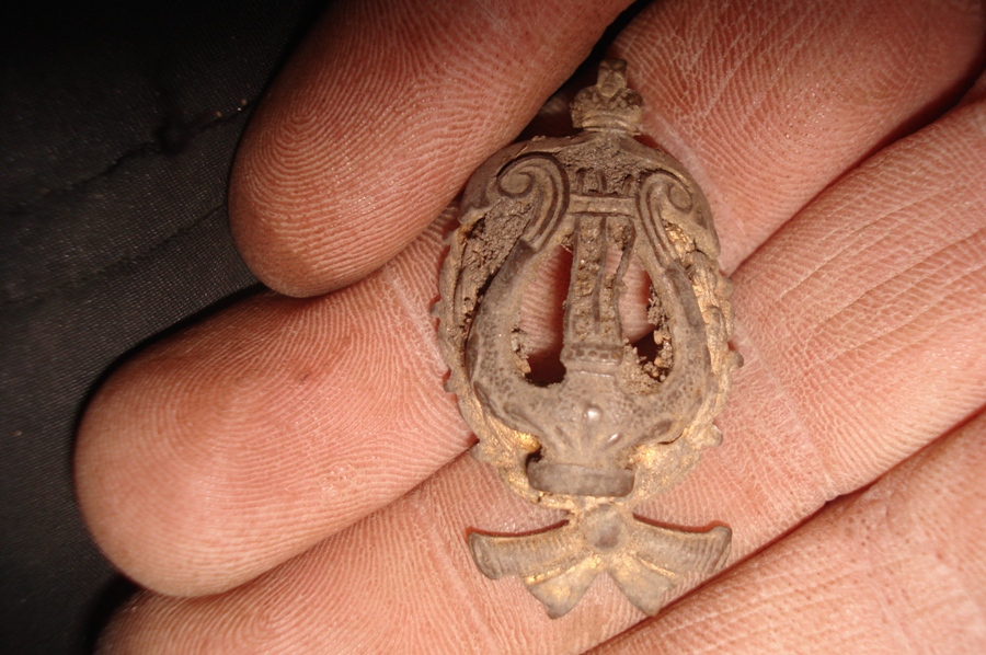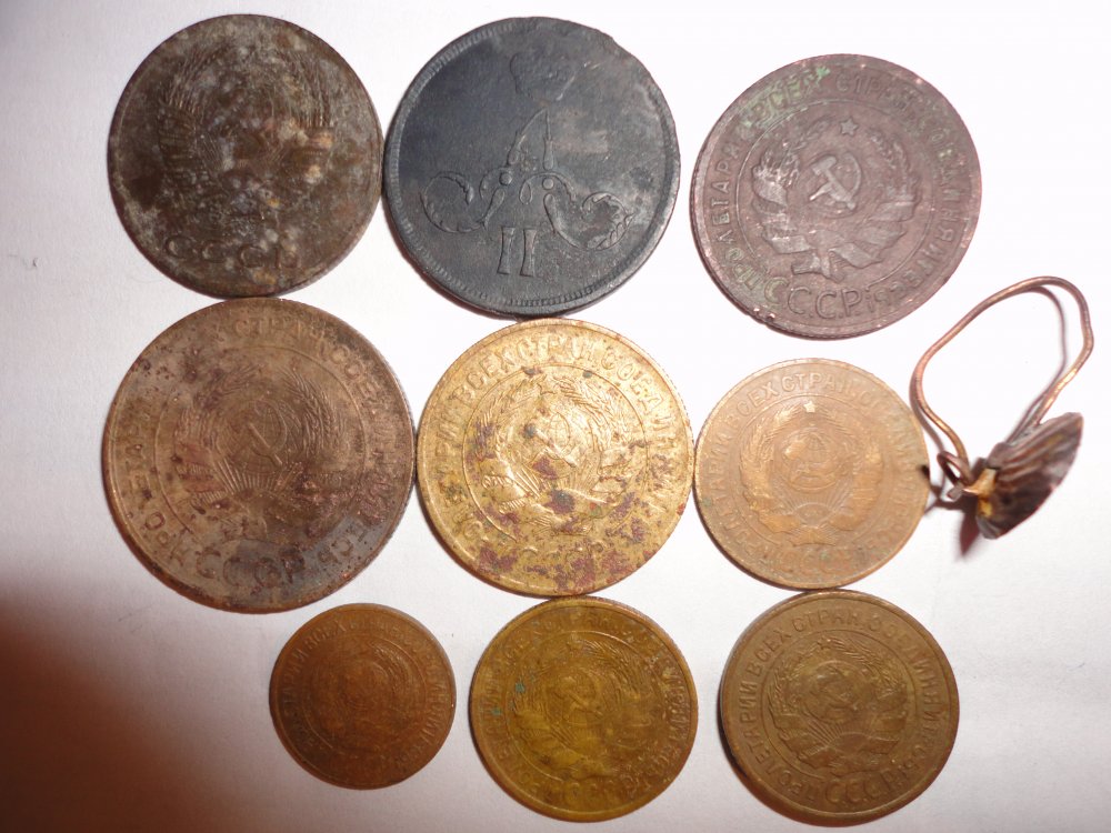 А у меня до сих пор фотик поломан так в 2 словах: обручалка рыжая(царизм), перстень татары (на щитке четыре ровных палки и одна в форме единицы), монеты: царизм пару,ранние советы ну и конечно пугло одно кстати с изображением арфы как знак представленный выше и т.д.