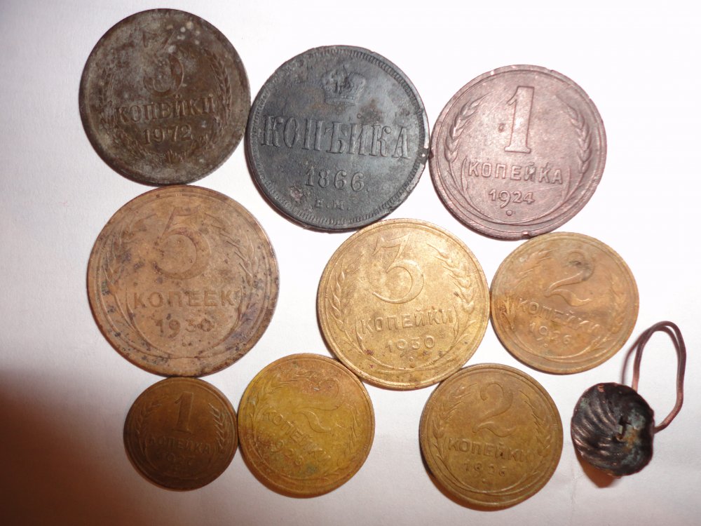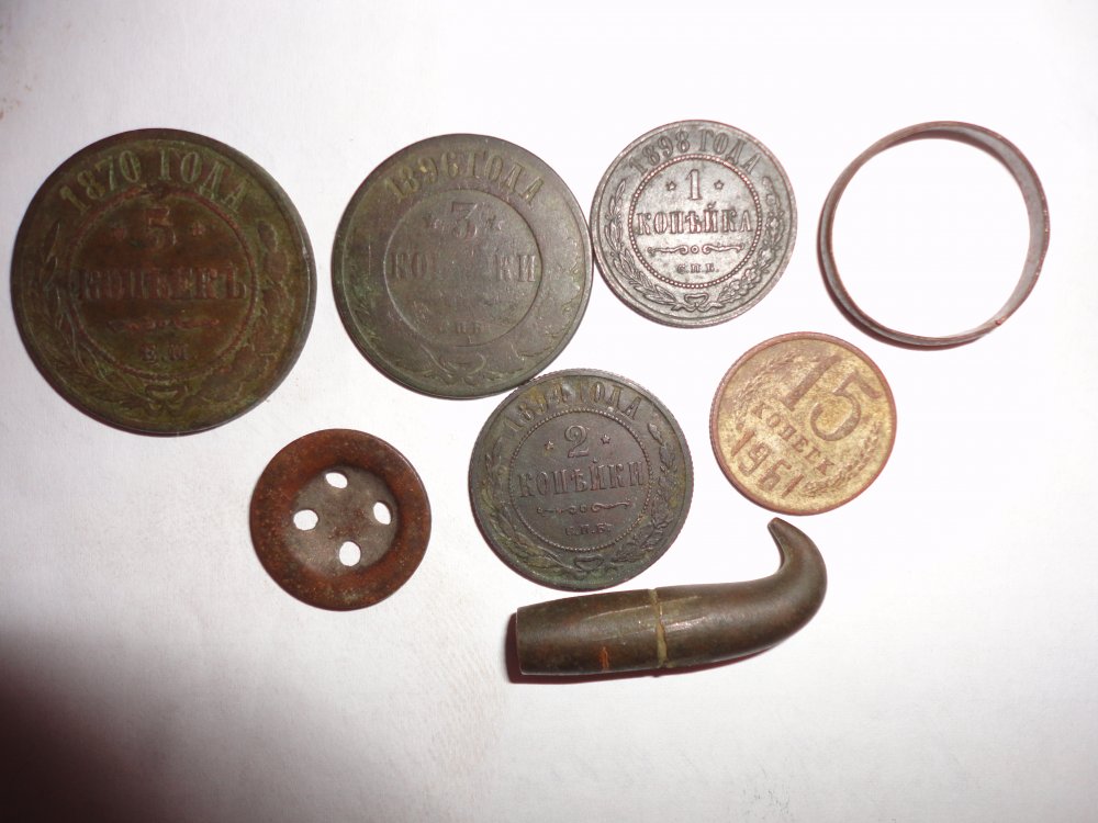Немного за сегодня.Ходил в лесу,все монетки и колечко с одной полянки.так-же где то с-пол кило латуни.на кольце надпись смог прочитать частично.Написано "1820 люблю..."5 коп 1870 вроде-бы ценятся...